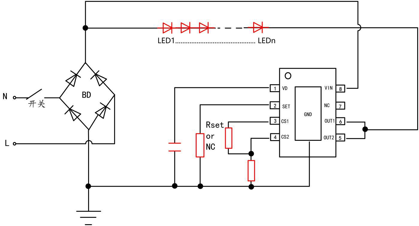 HX2088是一款开关调节亮度和色温的LED恒流驱动芯片,集成了高压MOS管和JEFT高压供电功能,主要用于高压线性恒流方案。