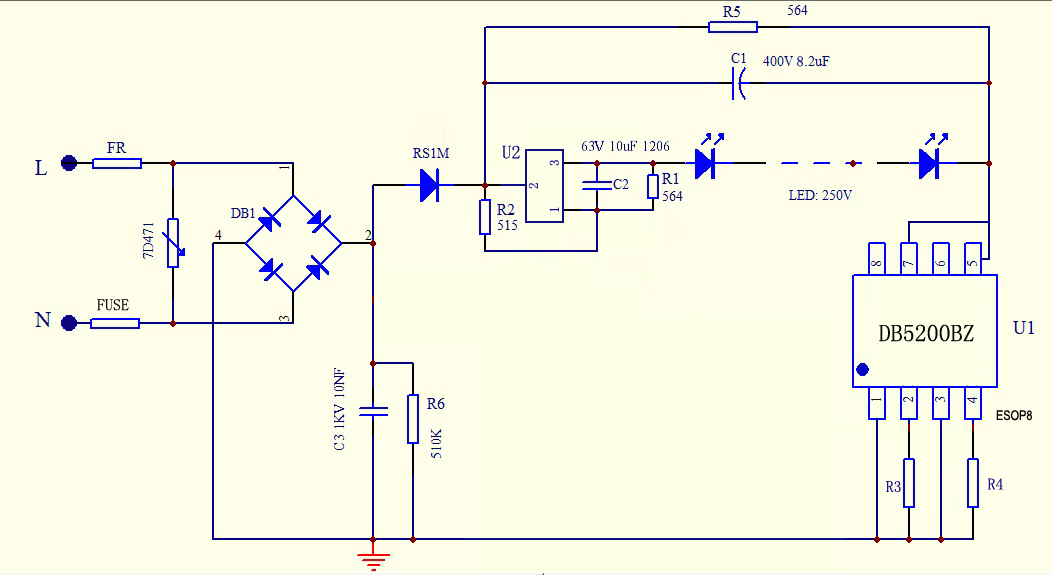极少的外围器件,与高压恒流芯片配套使用,可除频闪,与调光芯片配合实现可控硅深度调光无频闪。