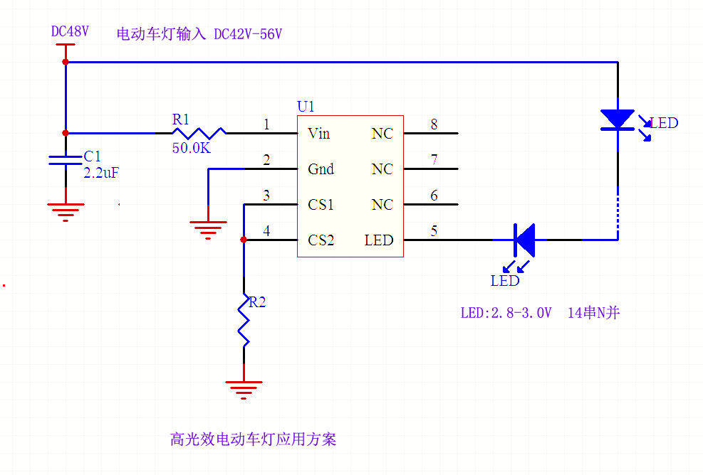 DC48V电动车灯恒流驱动IC应用