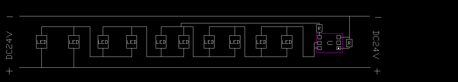 DC24V灯条PCB图 下图参考设计2并5串,每组IC成本<1毛钱
